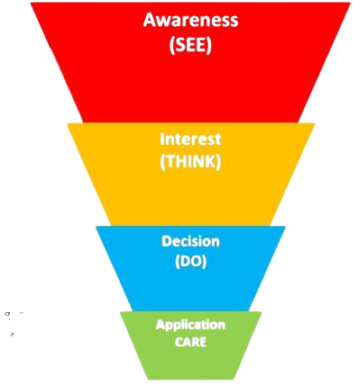 • Think (interest): door relevante boodschappen en targetingstrategieën zorgen we dat interesse wordt omgezet in overweging.
