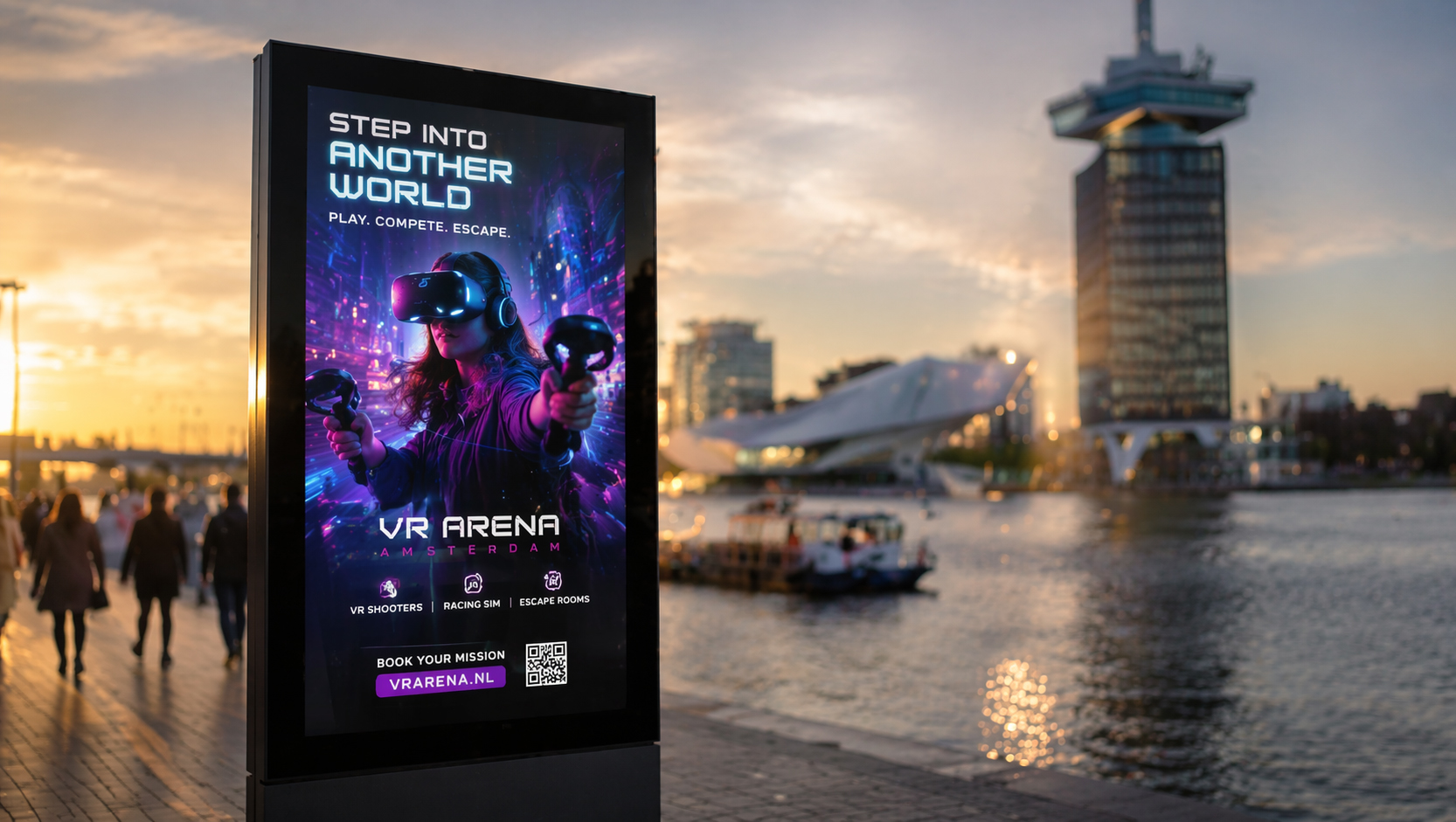 Hoe een vernieuwende VR-gamelocatie in Amsterdam met programmatic DOOH slim zichtbaar werd bij de juiste doelgroep.